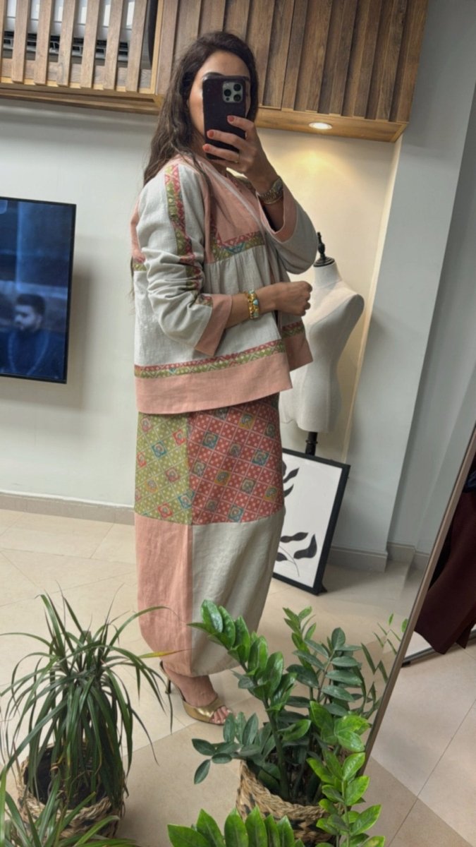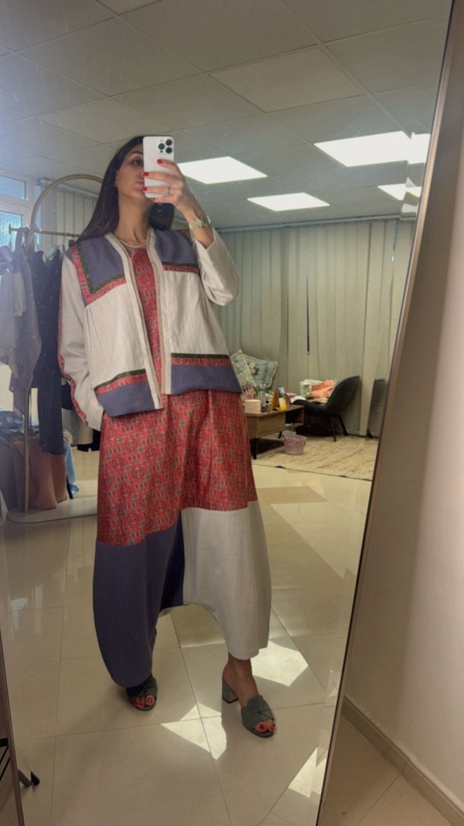 Sleeveless jumpsuit made from a mix of pure cotton and linen in different colors, a relaxed silhouette for ultimate comfort designed with handmade details.Comes with a wide sleeves linen jacket that compliments the look