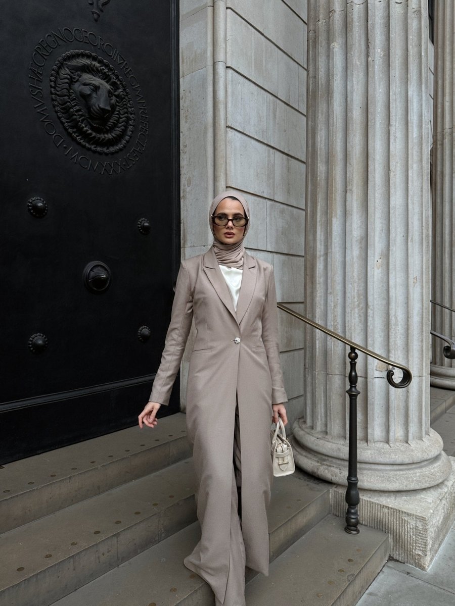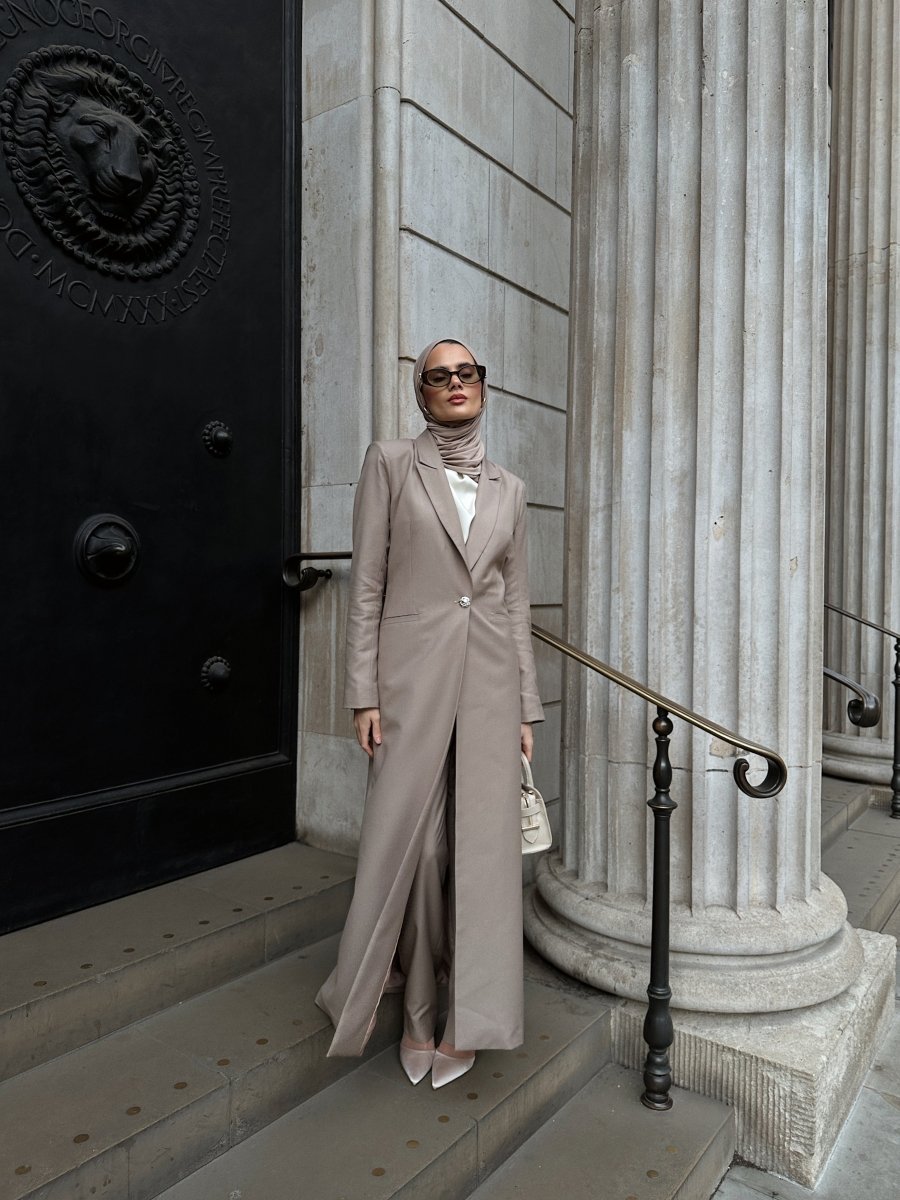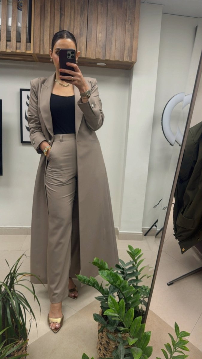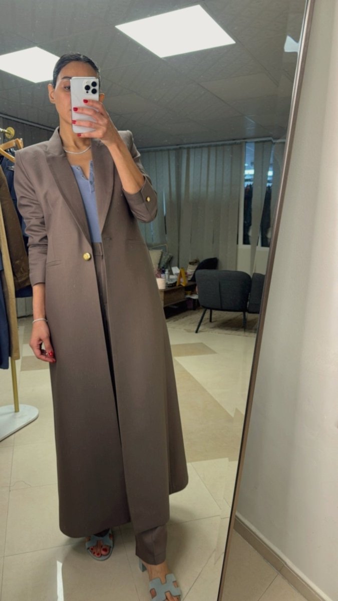 Celebrate the elegance of Eid with the Eid Majesty Set—a timeless ensemble designed for the woman who seeks refinement and grace. This set features a luxurious long coat crafted from premium England cotton, offering a rich texture and refined silhouette. Paired with matching trousers, also made from the same exquisite cotton, this set ensures both comfort and sophistication. The coat's flowing lines and tailored fit create a flattering, regal look, while the trousers add ease and elegance to the overall outfit.