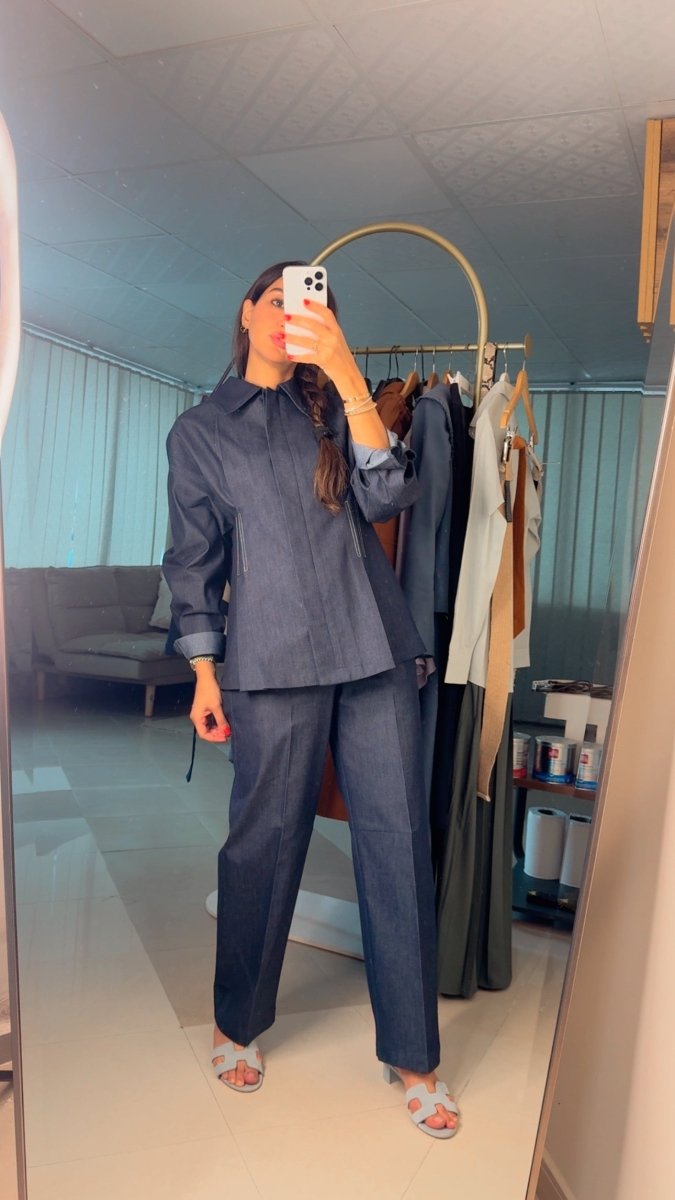 Crafted from premium denim fabric, this set combines effortless comfort with a structured, elegant silhouette — perfect for casual outings or travel days.