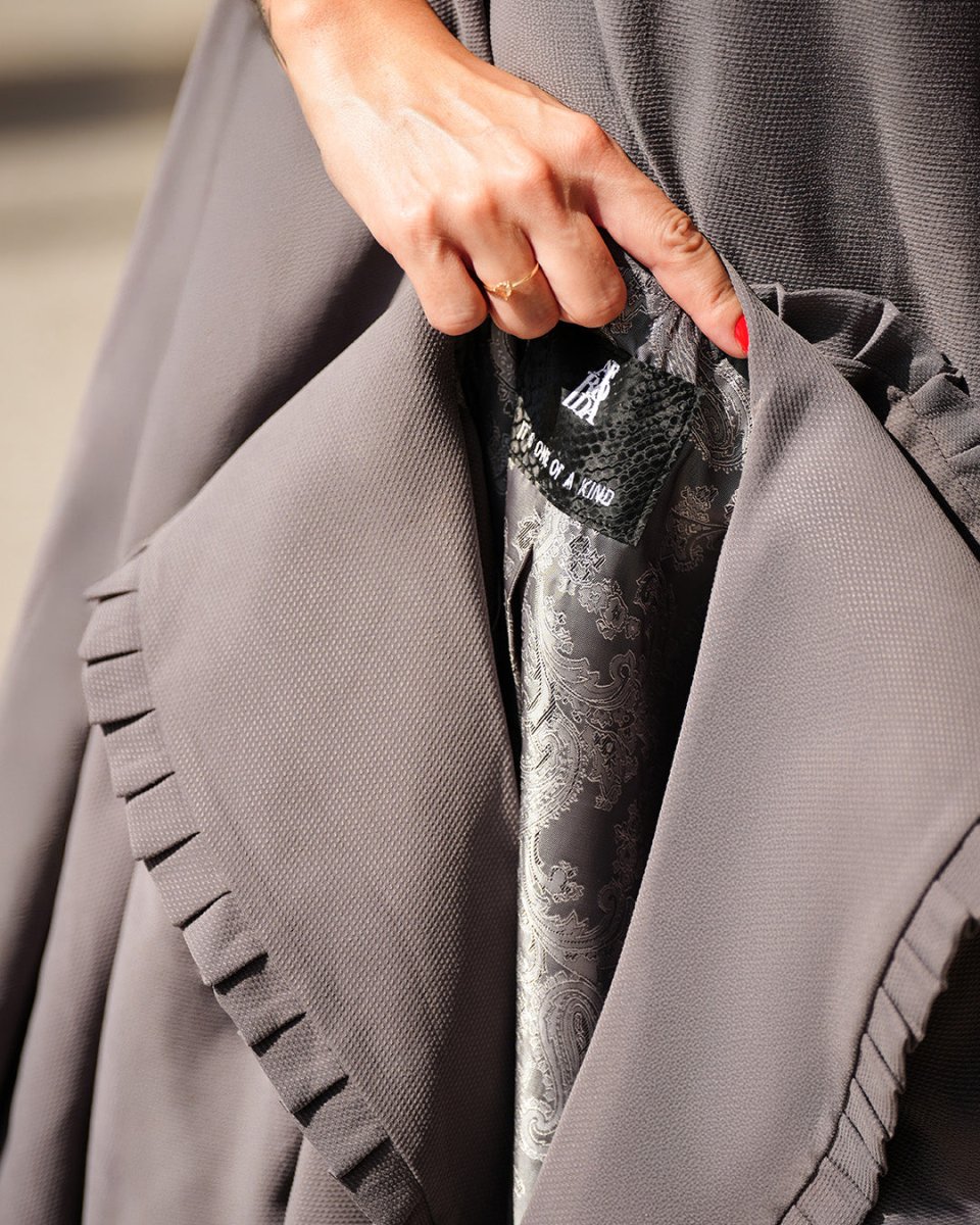 A refined two-piece set in a rich mocha taupe shade, featuring a flowy midi dress paired with a cropped double-breasted jacket. This elegant ensemble blends sophistication with modern charm, making it perfect for formal dinners, special occasions, or chic evening outings.