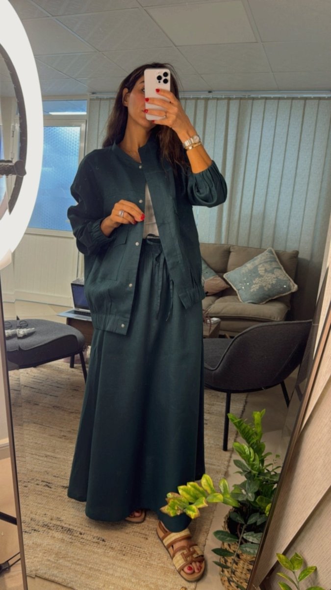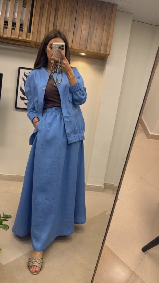 Embrace the essence of summer with this beautifully tailored organic linen suit. Crafted with care, it features a chic jacket and a flowing skirt, designed for comfort and style during those warmer days. Available in timeless black and navy, each piece is custom-made to your specifications, allowing you to choose your preferred jacket and skirt lengths. Made with 100% organic linen, this suit offers both eco-friendly luxury and breathability for the perfect summer look